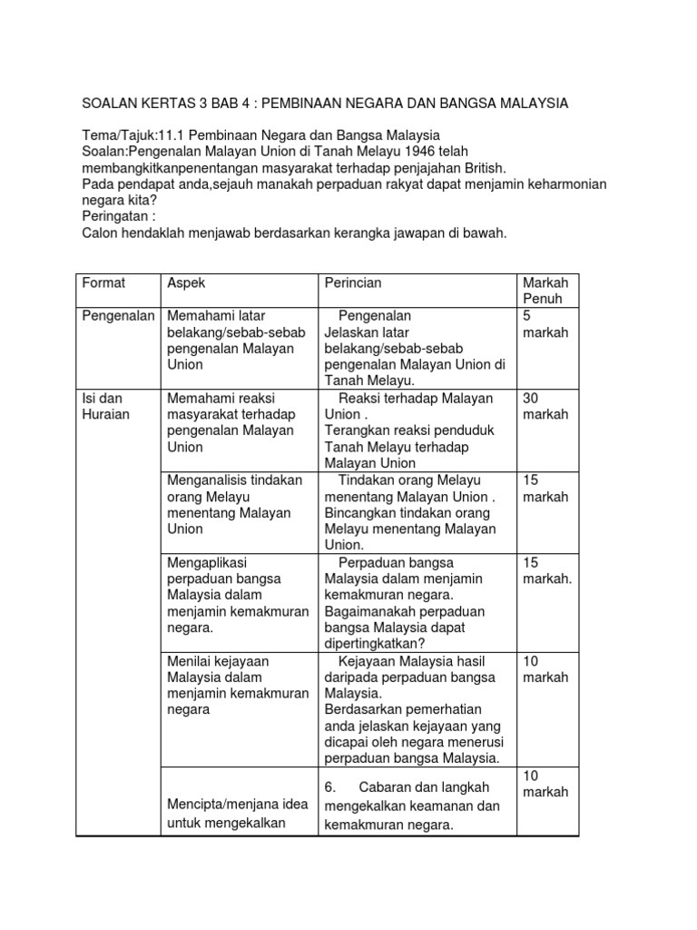 Malayan Union Tingkatan 5 Kertas 3. Calon hendaklah menjawab berdasarkan kerangka jawapan di bawah -. Salam cikgu saya nk skema kertas 3 tema 11 pembinaan negara dan bangsa msia tema 111.